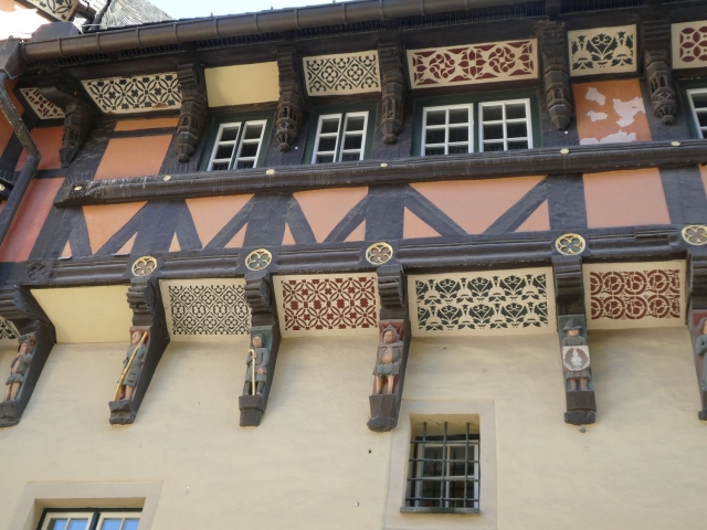 Am Anbau des Rathauses zog eine Reihe kleiner Figuren, die 1939 vom Wernigeröder Bildhauer Otto Welter in die Fassade des Anbaus eingebracht wurden, die Aufmerksamkeit auf sich. Eine zeigt das Schlitzohr, einen Mann der gern Frauen hinterherpfiff, damit sie ihm folgen sollten; ein anderes einen Stadtpolizist, der die Hutkrempe ins Gesicht gezogen hat, um nicht zu viel zu sehen.