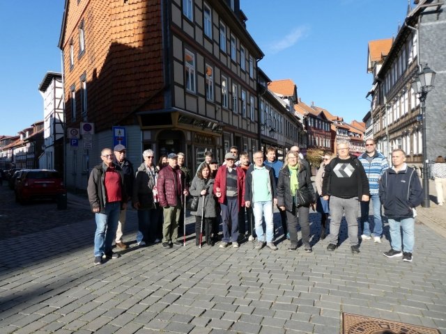 Stolze 83 war der ehmalige Lehrer, der schwungvoll und lebendig auch bei der 16. Stadtführung neue, andere Aspekte der Bunten Stadt am Harz präsentierte. Mit den 20 Teilnehmern vom Schach erkundete er Hauptplätze und enge Gässchen. Ob Wiederholungstäter, Neulinge oder Sehbehinderte, alle hatten ihren Spaß, denn diesmal ging es eher um die Histörchen hinter der Historie.