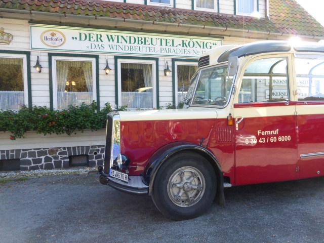 Die Westharztour führte uns zuerst über Ilsenburg und Bad Harzburg nach Goslar zur Kaiserpfalz und dem Bergmannsglockenspiel auf dem Goslaer Markt. Von da ging's nach Altenau zur Okertalsperre, wo wir uns beim "Windbeutelkönig" mit dessen Brandteiggebäck aus einer Auswahl von über 22 Sorten verwöhnen ließen, bevor es über Torfhaus, mit Blick auf den Brocken, Braunlage und Elend (ach du liebes Elend!) wieder nach Wernigerode ging.