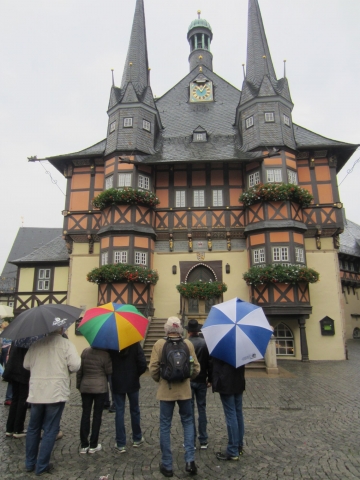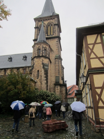 Nach einer kurzen Vorführung des örtlichen Dialekts ging es durch die Straßen der Stadt, vorbei an wichtigen Sehenswürdigkeiten. Die Führung endete auf dem Nikolaiplatz mit jenem Spruch, den Heinrich Heine angeblich in der beflügelnden Höhenluft des gewaltigen Brocken geprägt haben soll:
