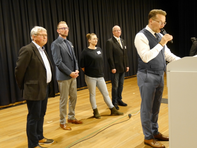 „Kurze Eröffnungen schaffen wir nie“, ruft Organisator Dr. Dirk Jordan in den Saal, bevor er die illustre Gästeschar auf der Bühne des HKK Hotels vorstellt: Neben Wernigerodes Oberbürgermeister Tobias Kascha haben sich mit Inga Korsch (Dymantix Wernigerode), Gert Kleint (Vizepräsident des Landesschachverbands Sachsen-Anhalt) und René Maue (Verkaufsleiter des HKK Hotels) noch weitere Freunde des Turniers eingefunden.