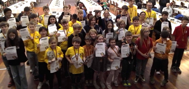Mit viel Spaß am Schach waren die fünf Runden wie im Flug gespielt. Alle Kinder freuten sich bei der Siegerehrung über eine Medaille und eine Urkunde, die Besten in jedem Jahrgang zusätzlich über einen Pokal.