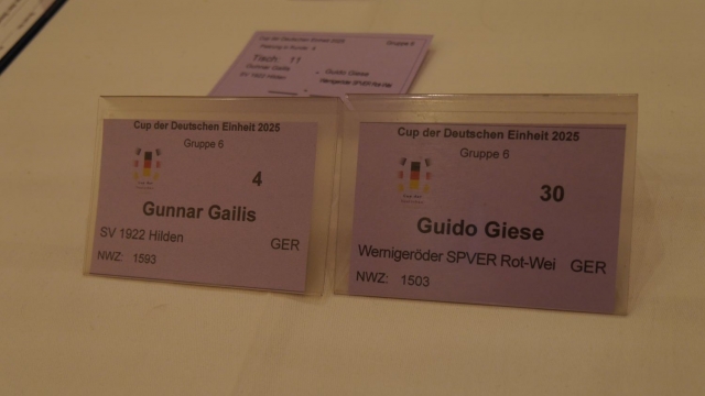 In Gruppe 6 starteten zwei Spieler die 4. Runde mit hoher Datenübertragungsrate: 4G war angesagt. In HD haben sie sicher nicht gespielt; sie waren nachweislich in WR. Jedenfalls trennten sich Gunnar Gailis und Guido Giese mit einem Remis. Fun Fact am Rande: Zusammengenommen haben die beiden 27 Teilnahmen am Cup der Deutschen Einheit vorzuweisen.